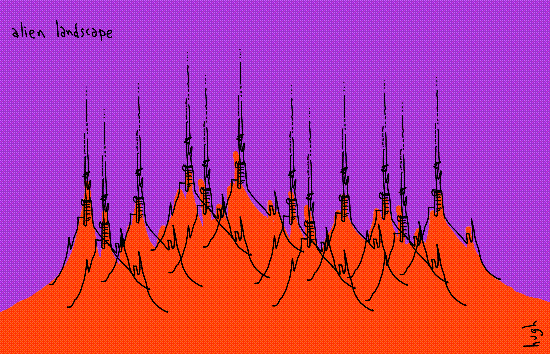 Cool drawing, Hugh! Reminds me quite a bit of the terminal at DIA (at dusk perhaps?) 🙂
