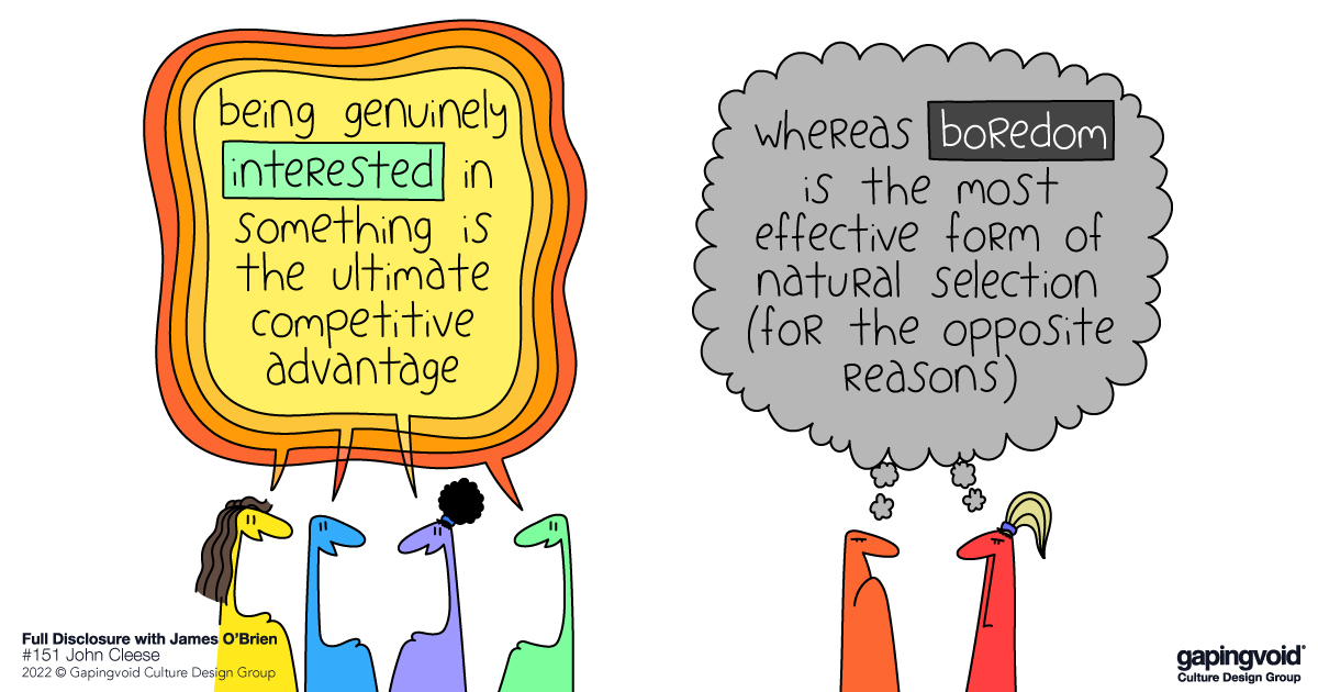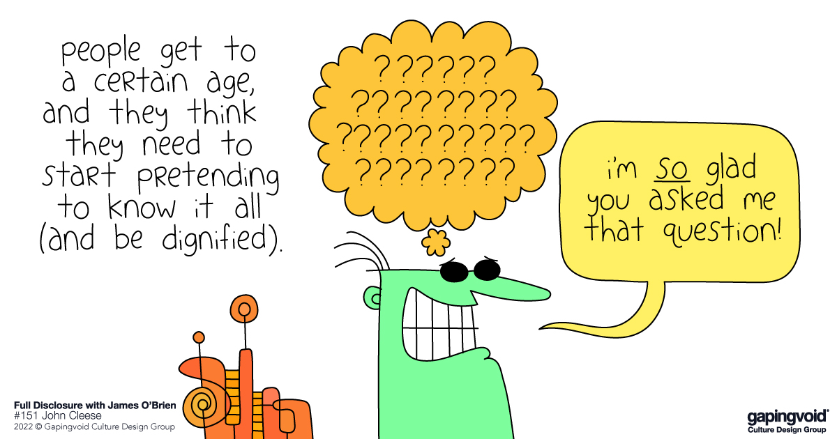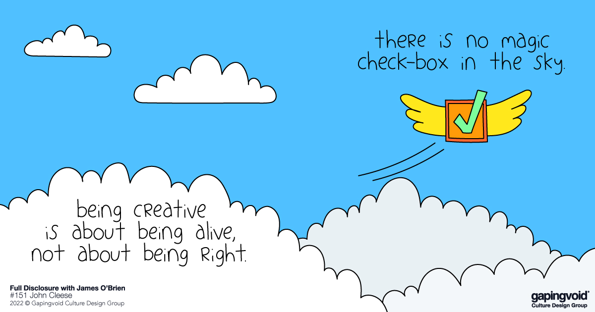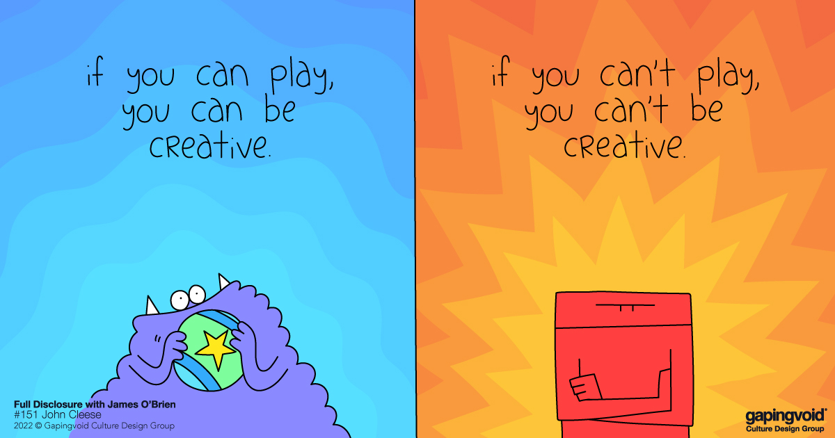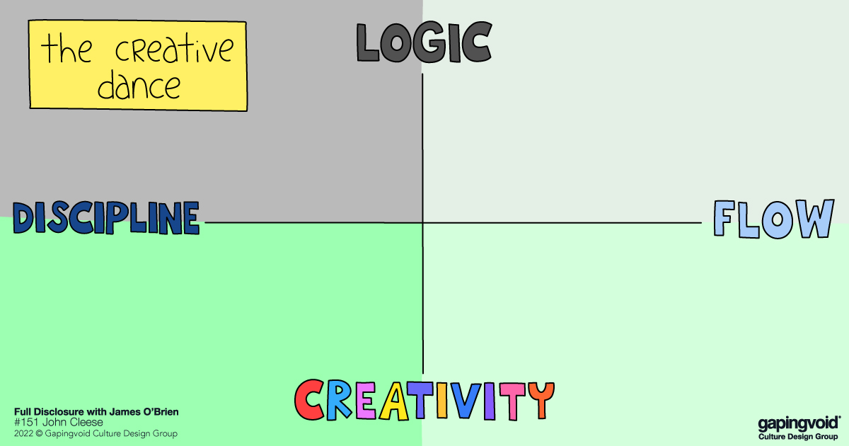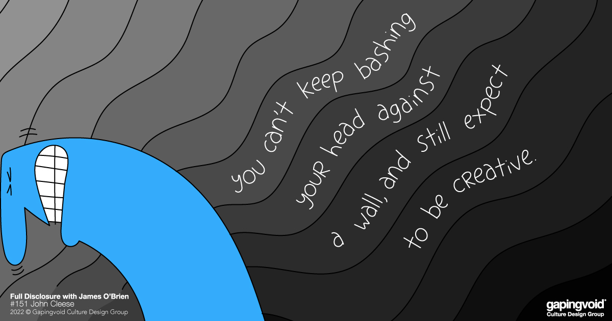 James O’Brien is a well-known radio journalist and author in the UK who also has a podcast, named “Full Disclosure.” Back in August, he talked with the even more well-known comic, John Cleese of Monty Python fame, on the subject of “creativity.”