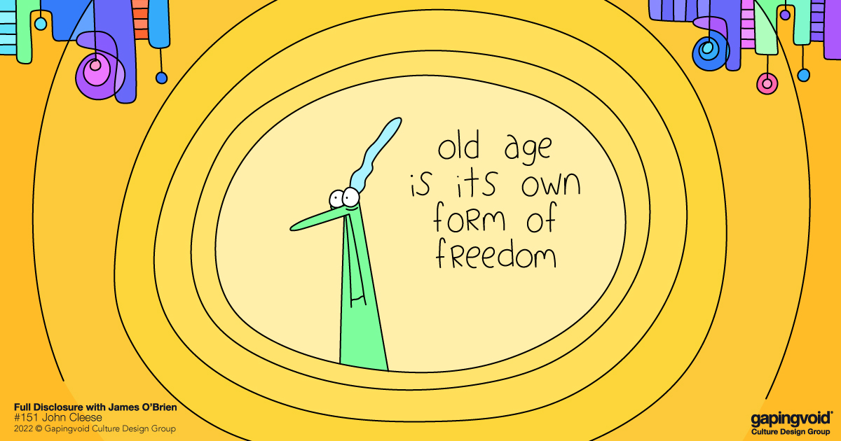 - When you get old (John Cleese is 83), you stop caring so much about what other people think. This is its own form of freedom.