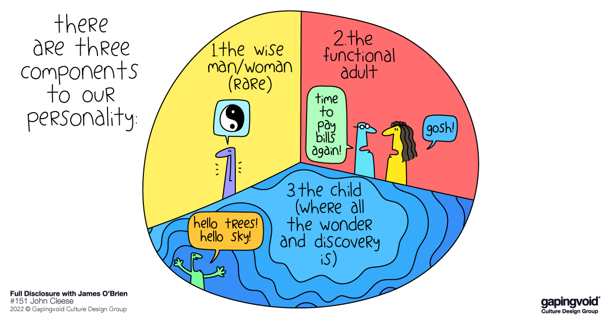 - John Cleese said his former collaborator, the psychiatrist, Robin Skynner, used to talk about how every personality is in fact composed of three sub-personalities: The Wise Man/Woman, The Boring/Responsible Adult, and the Carefree, Playful, Creative Child. These three selves are always in conflict with each other.