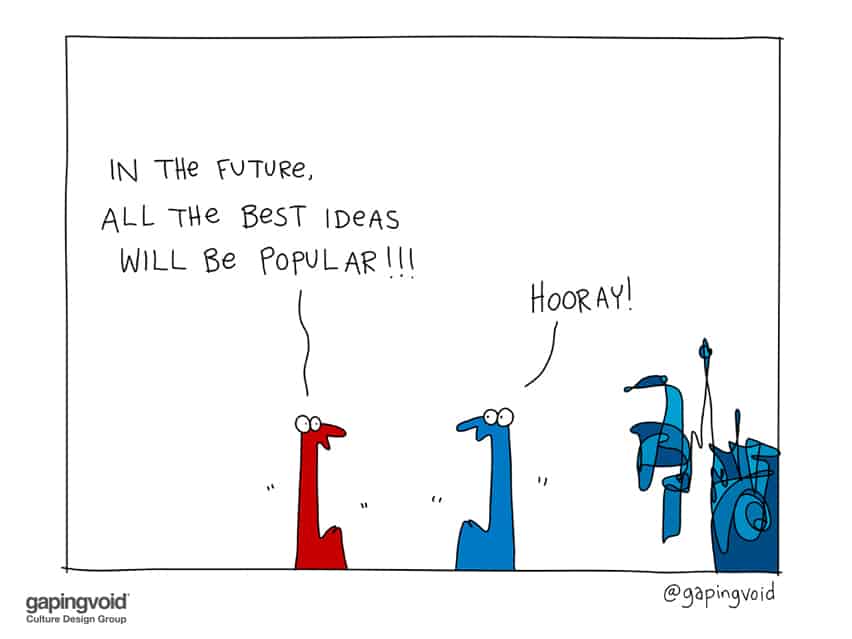 This illustration has the opposite thesis to my first book, “Ignore Everybody”. That is, once you’ve come up with your big idea, don’t expect your friends and family to “get it”. They probably won’t.