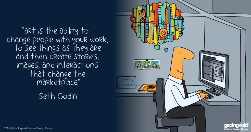 Years before Gapingvoid was founded, our co-founder noticed that at his advertising agency job, tha the vast majority of newspaper comics being posted on doors were Dilbert cartoons. Their poignancy about organizational culture seemed to really hit a nerve.