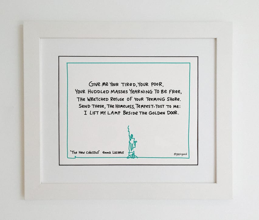 With that in mind, it’s a perfect time to revisit Elizabeth’s Lazarus’ famous sonnet, “The New Colossus”, which she wrote to raise funds for the pedestal for the Statue Of Liberty.