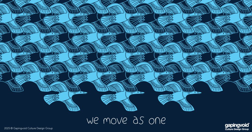 The magical, synchronized movement of a flock of starlings isn’t the product of any one bird; it’s the murmuration produced when the birds come together.