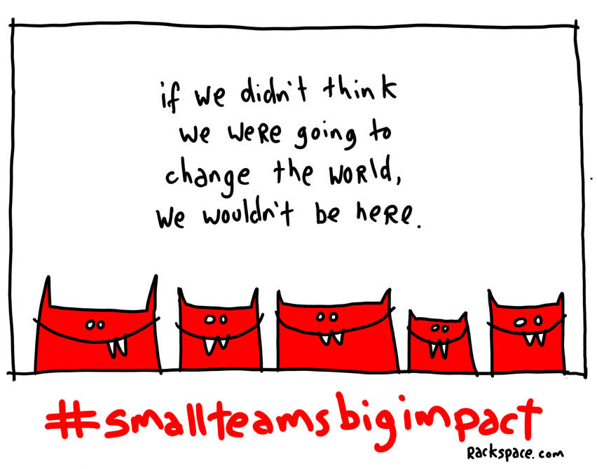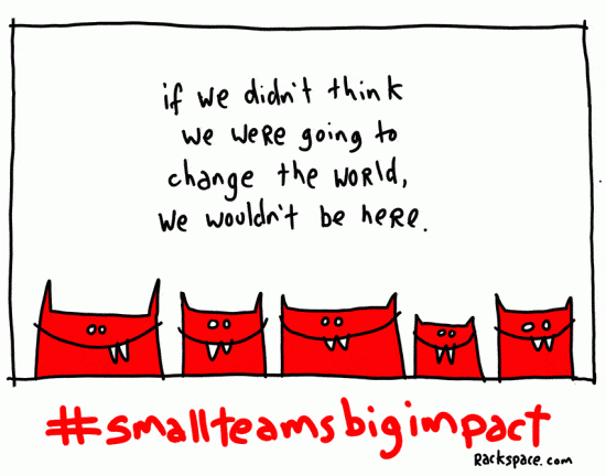 Of all the cartoons I’ve done for Rackspace, this is one of my my favorites. Part of the #SmallTeamsBigImpact thing that Robert Scoble has going on.