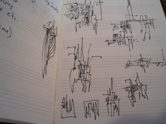 Whoa. Do you usually use staff paper to write notes? It’s good to see what your work looks like when it’s messy — gives a little confidence to see that all of your ideas don’t spring from your head fully formed.