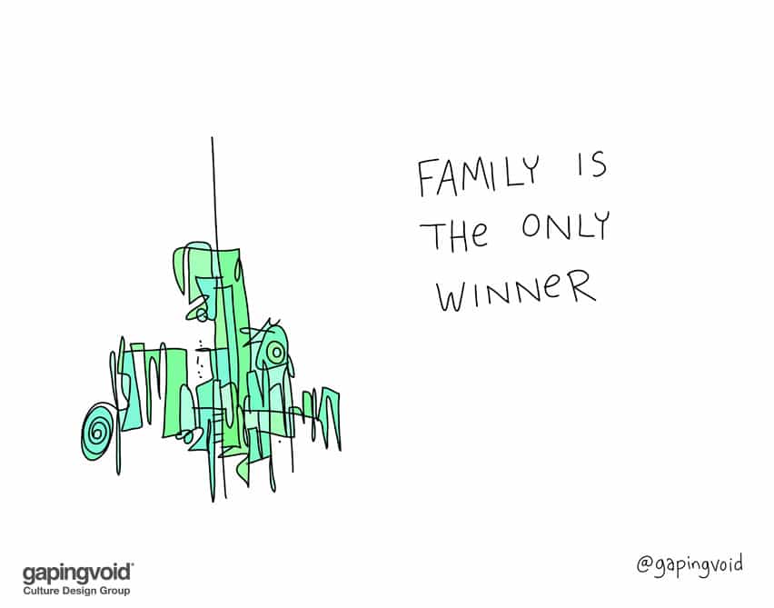 Like the image above implies, family is the only victory. Which is why the latest round of the talent war will be fought on the family front- or “the family-friendly front”, if you prefer. And people with families (especially families with young children) will be utterly delighted to learn this.